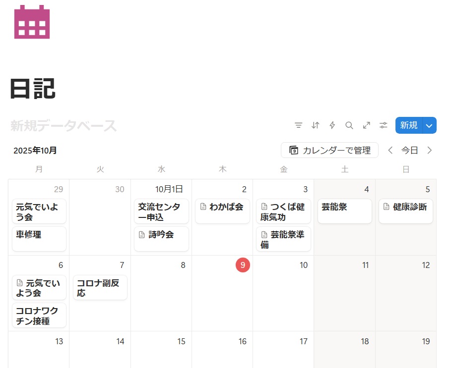 そこで、Googleカレンダーと同じく、月毎のカレンダーに、イベントを記入し、